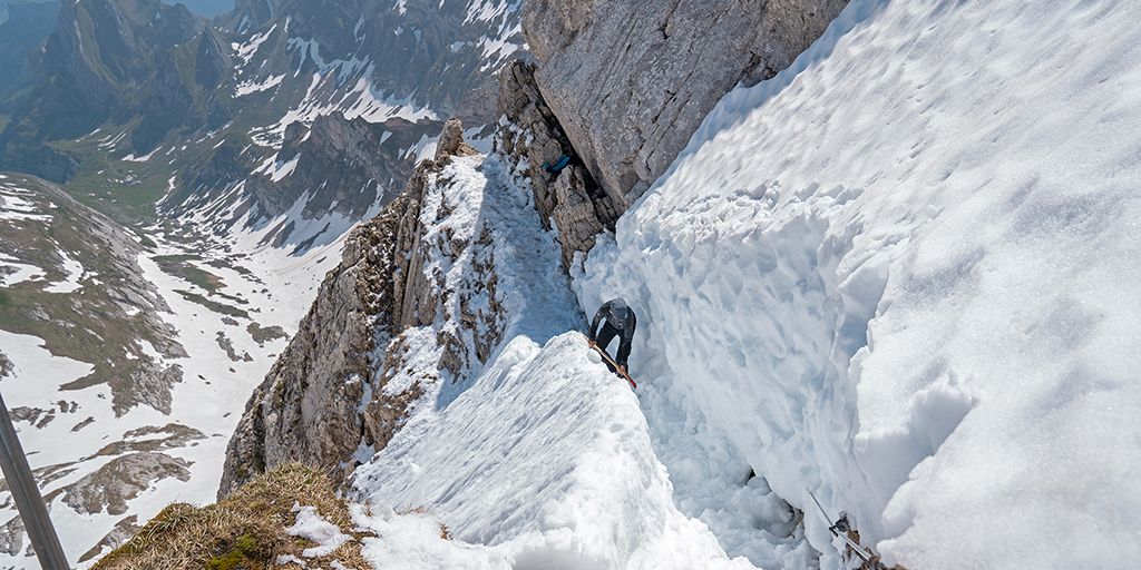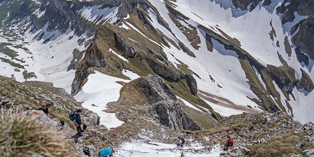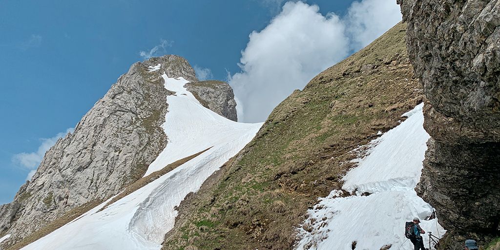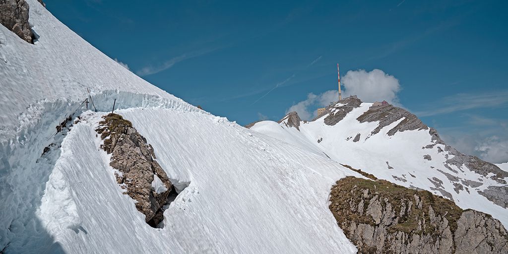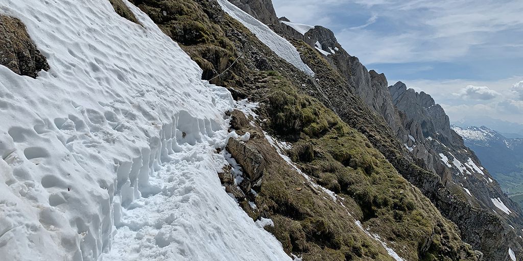 Zurzeit liegt noch viel Schnee in den höheren Lagen. Wir haben den Weg vom Säntis über den Lisengrat und die Fliswand freigeschaufelt. Es liegen noch grosse Schneefelder mit viel Schnee, welche überquert werden müssen. Für geübte und schwindelfreie Berggänger sind der Lisengrat und die Fliswand mit gutem Schuhwerk gut begehbar.